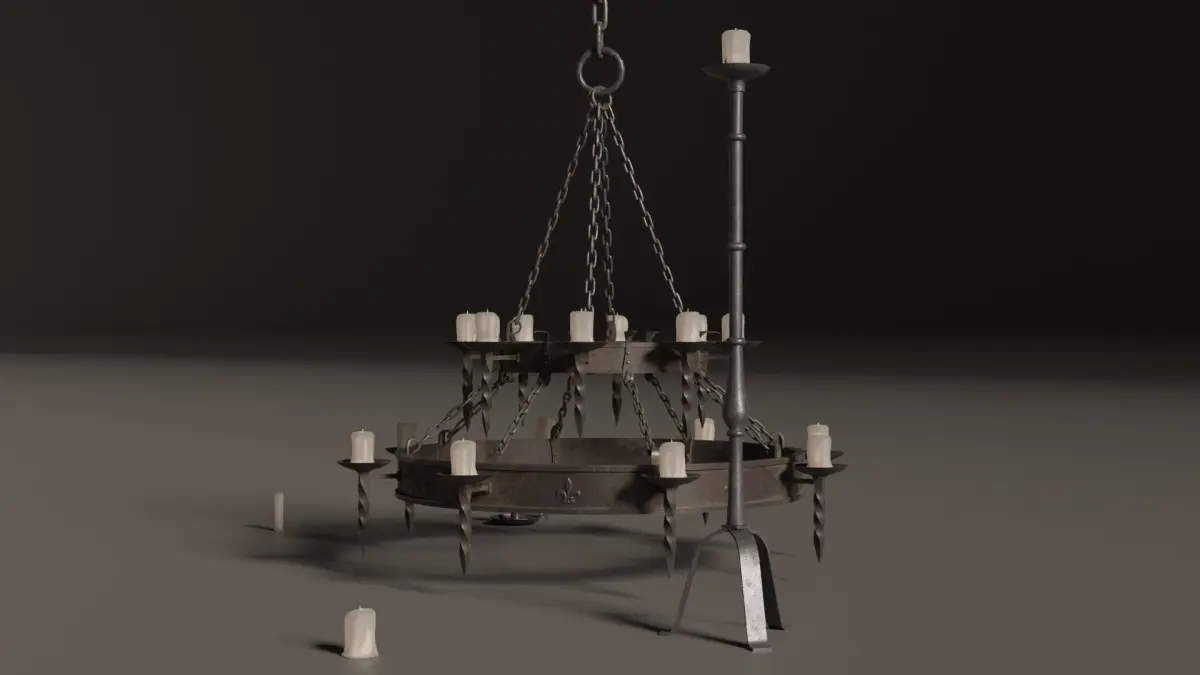 Features: Chandeliers and Candles. Textured in Substance Painter. All models have UV baked textures. The textures includes Diffuse Map, Metallic Roughness Occlusion Packed in the rgb channels, Normal Map directx(you have to flip the green channel when using opengl).