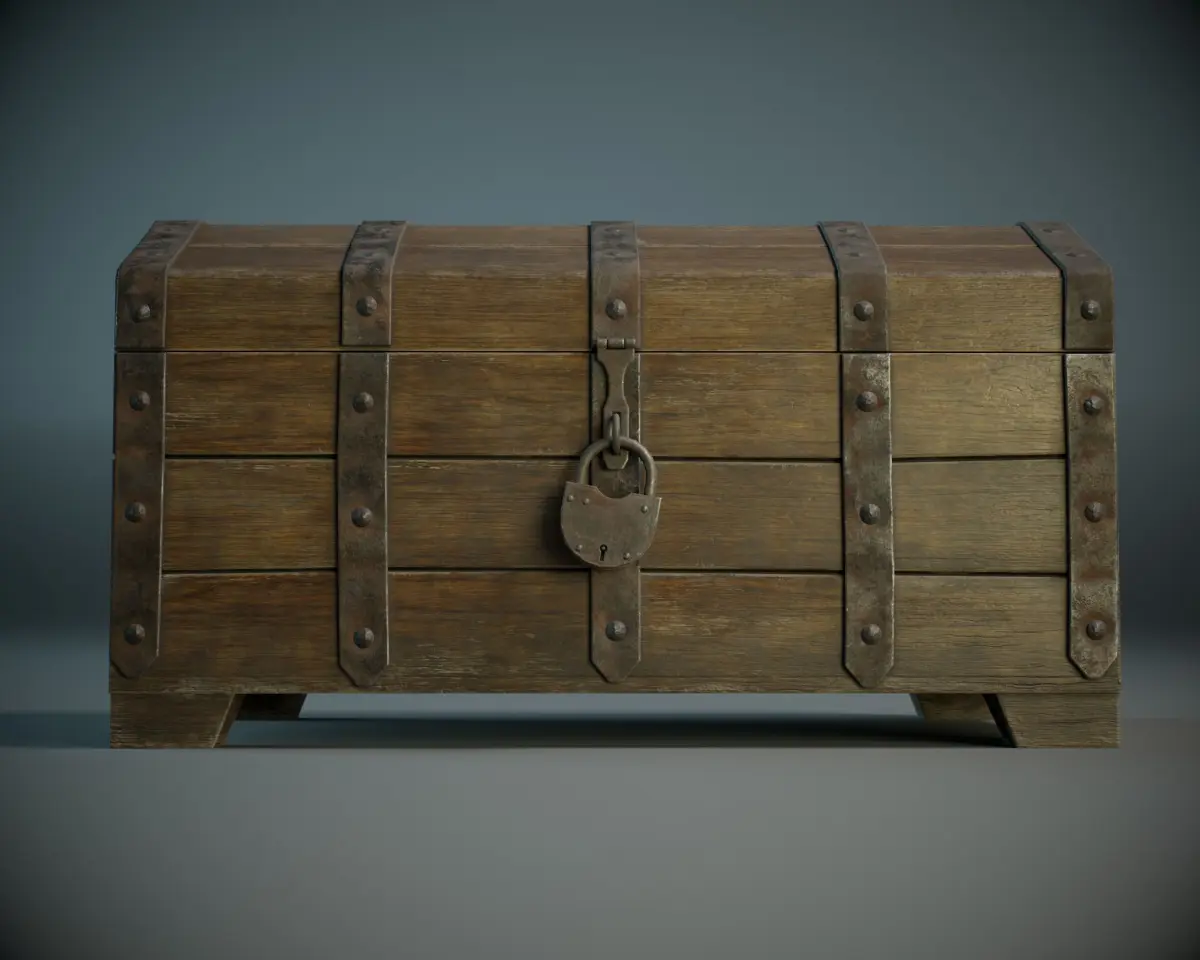 Low-poly PBR Medieval Chest model intended for game/realtime/background use.