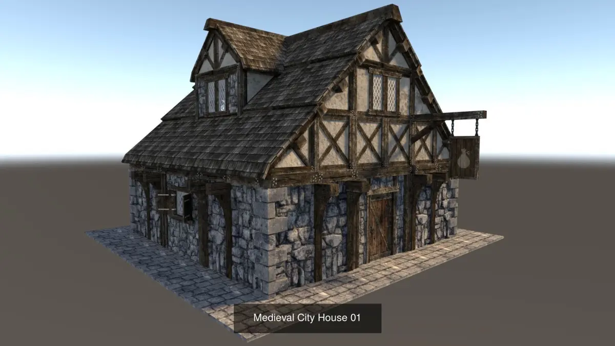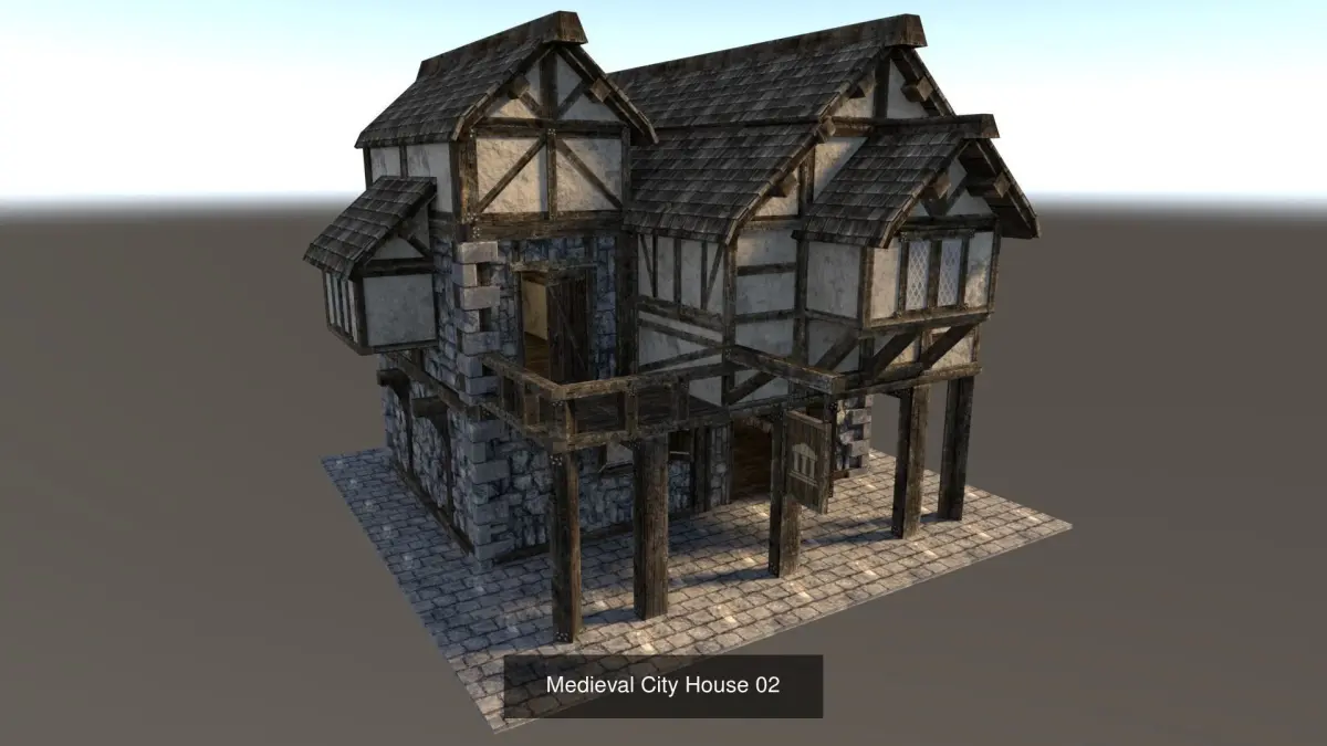 This model pack contains 6 Medieval Buildings, as seen individually in my published models.
