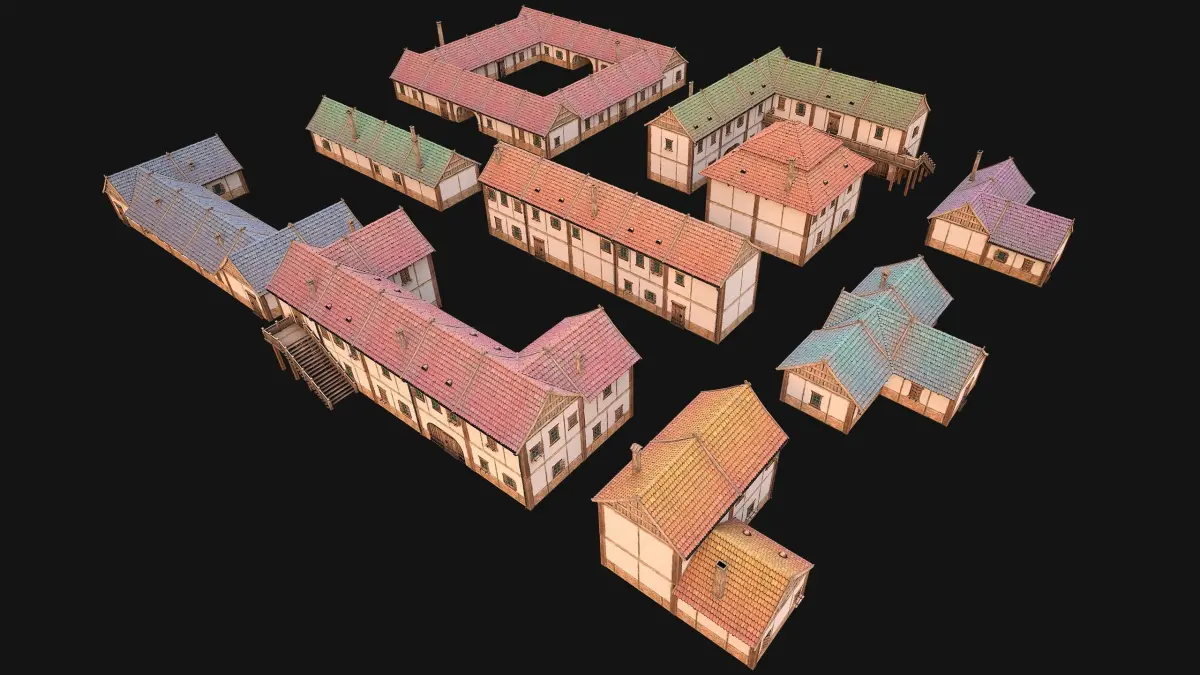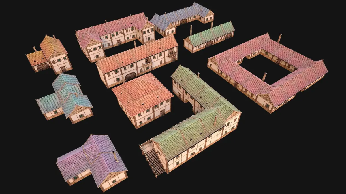 Game ready models Medieval Town Buildings Set.The model contains lods, detailed information on the images.Stylized and detailed Medieval Town Buildings Set textured, sculpted and rendered with Physical based rendering (PBR) - Shown images have been rendered in Marmoset Toolbag .The set contains 10 models of medieval buildings.