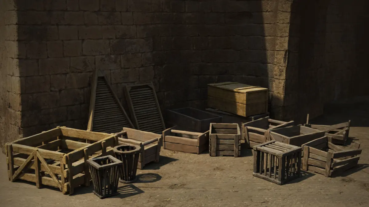 Medieval classic wooden crate Low-poly 3D model