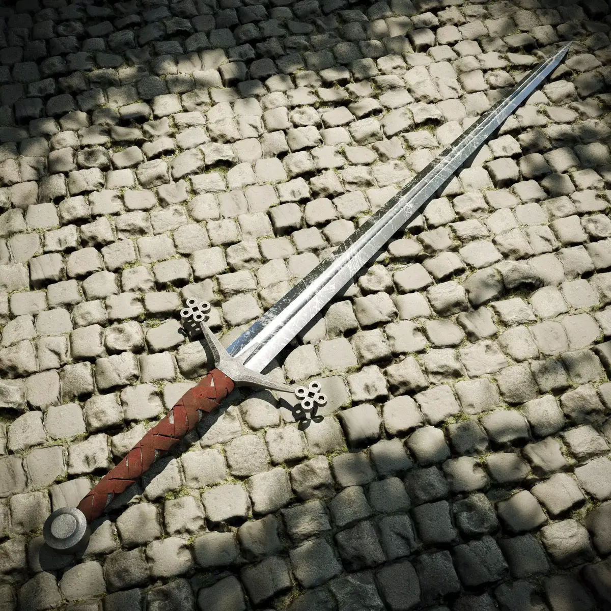 medieval Scottish claymore, a two-handed greatsword known for its powerful strikes and historical significance in the 14th to 16th centuries. Featuring a long forged steel blade,wrapped grip, and ornate crossguard with Celtic knotwork, it’s perfect for game , animations, or historical renders. The high quality model includes 4K PBR textures