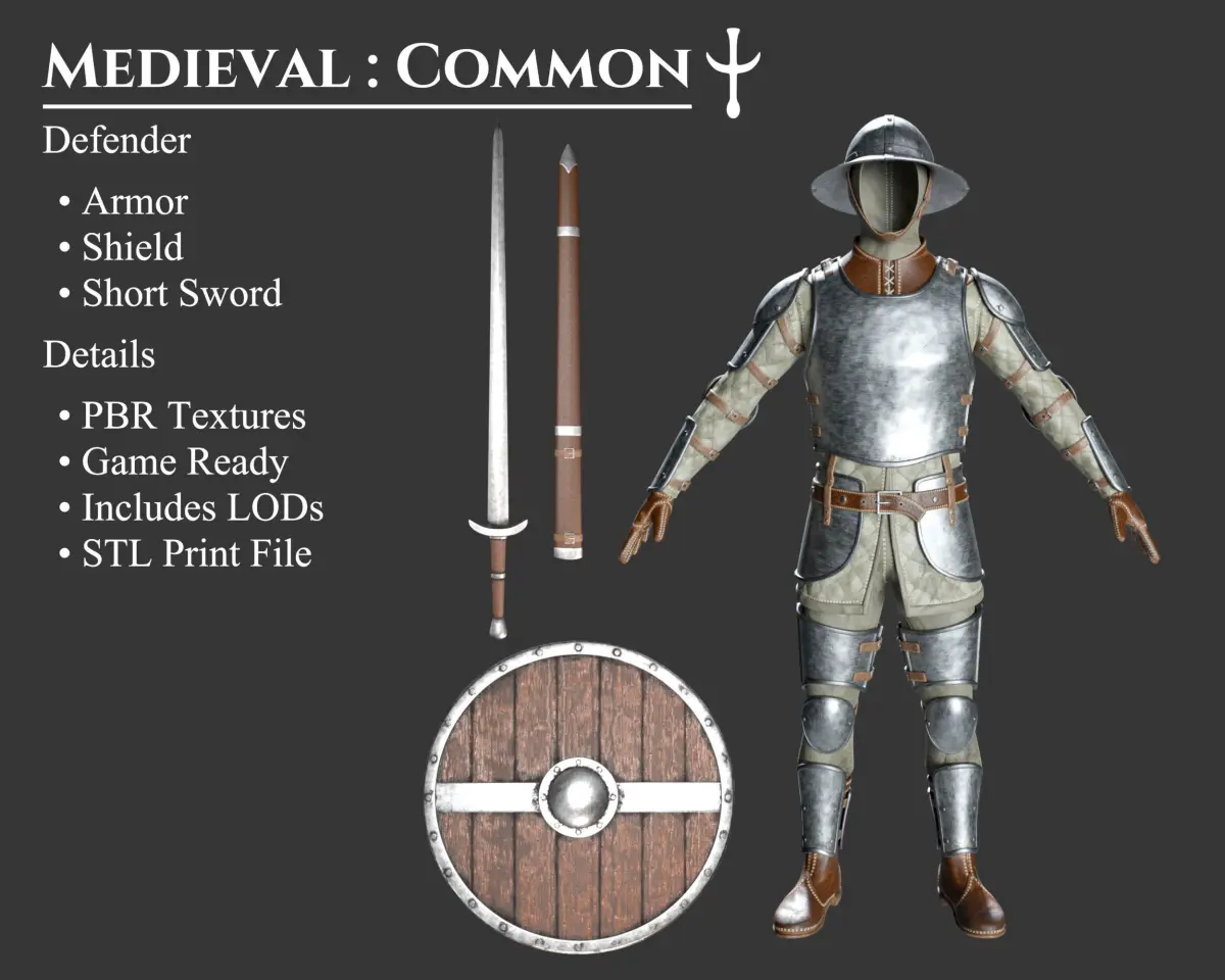 - This Collection Set offers an Armor Set and 3 matching Weapons and Accessories all in the Common style. Each model includes 3 Polygon levels; High Poly, Medium Poly, and Low Poly. These models can be purchased separately. These models may be included in other collections for a different price.