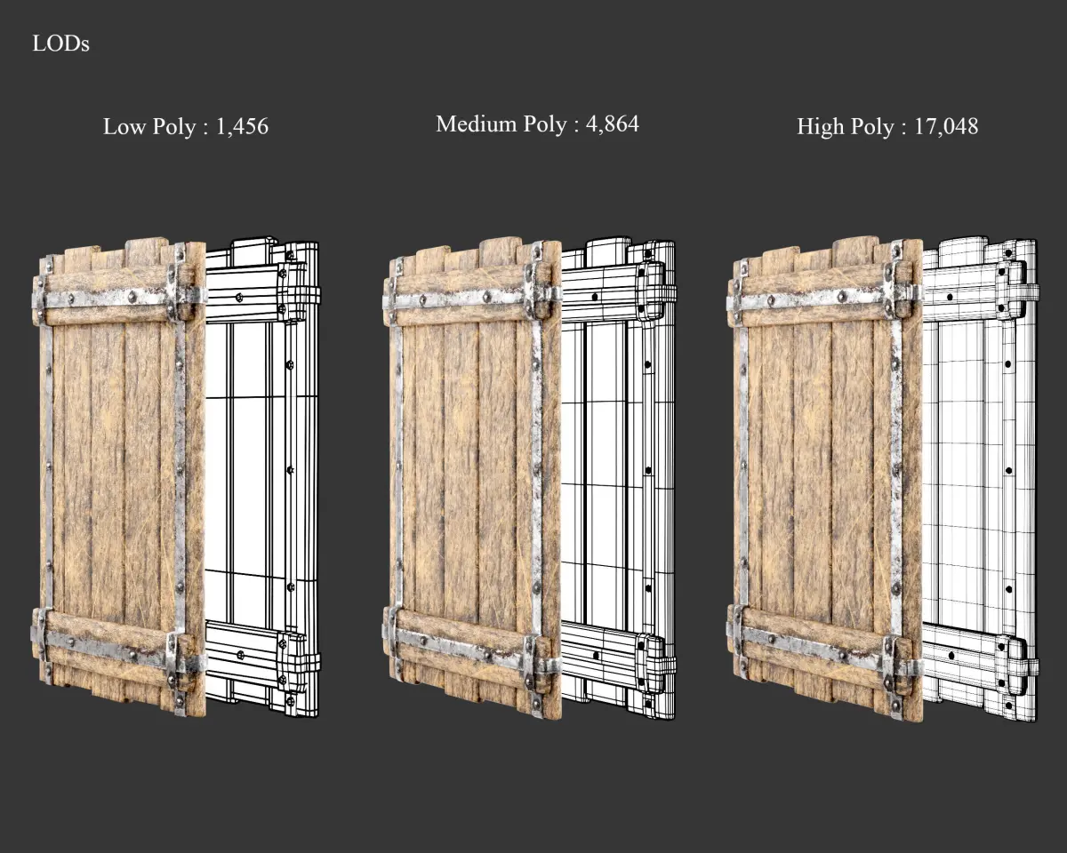 - Each Model has Low Poly, Medium Poly, and High Poly models.