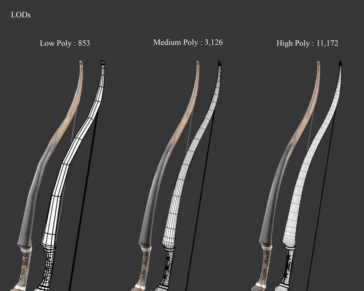- Each Model has Low Poly, Medium Poly, and High Poly models.