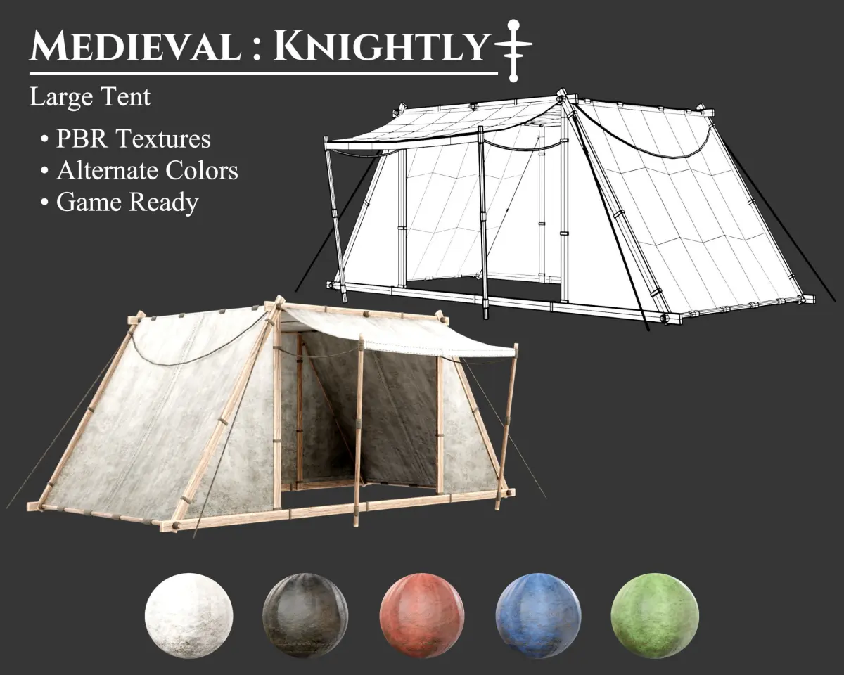- This collection set offers 3 different medieval tents in the Knightly style. Each model is optimized for games and real time with Low-Poly meshes and PBR materials. These models can be purchased separately and may be included in other collections for a different price.