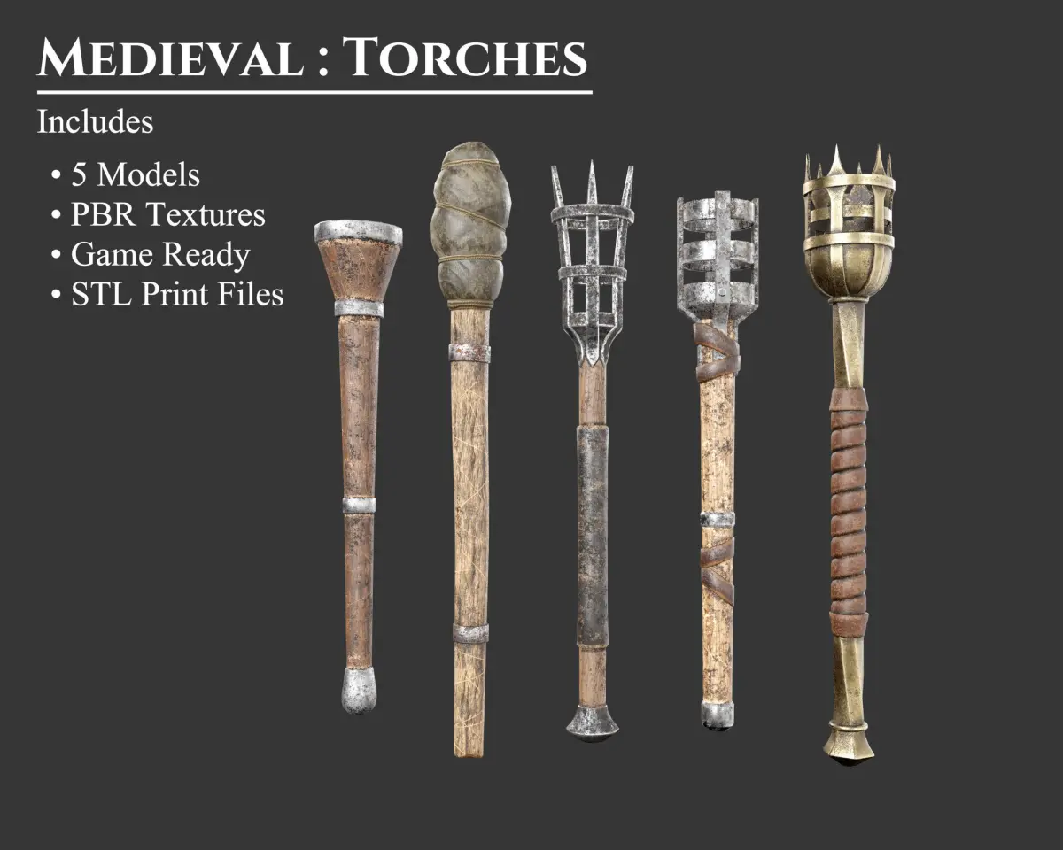 - This Collection offers 5 unique Torches. Includes the Crude, Common, Knightly, Elegant, and Noble Style torches. These models can be purchased separately. These models may be included in other collections for a different price.