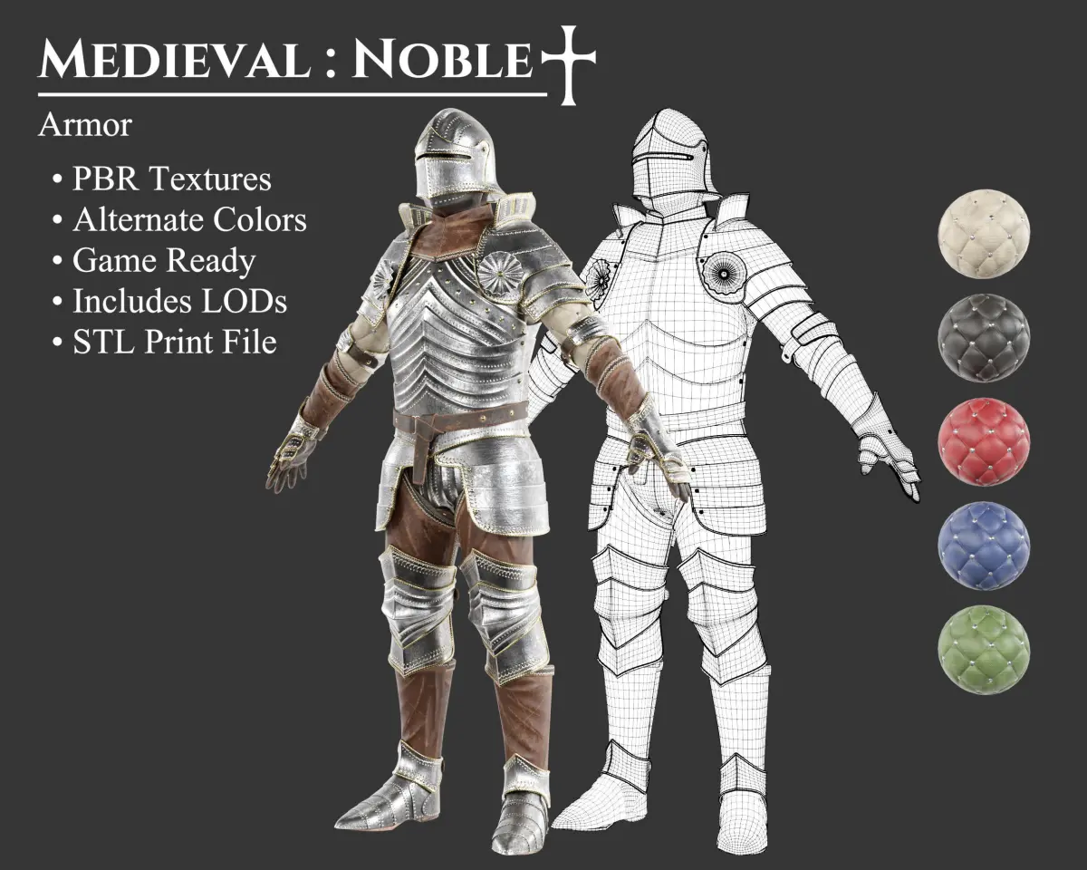 - This Collection Set offers 8 separate products, with a total of 21 individual models. This package features medieval armor and weapons in the same Noble aesthetic style. These models may be sold in other collections for a different price.