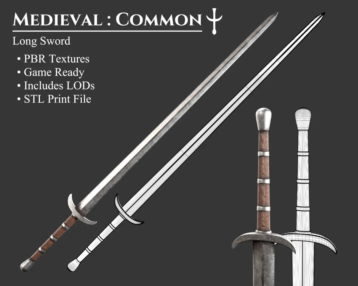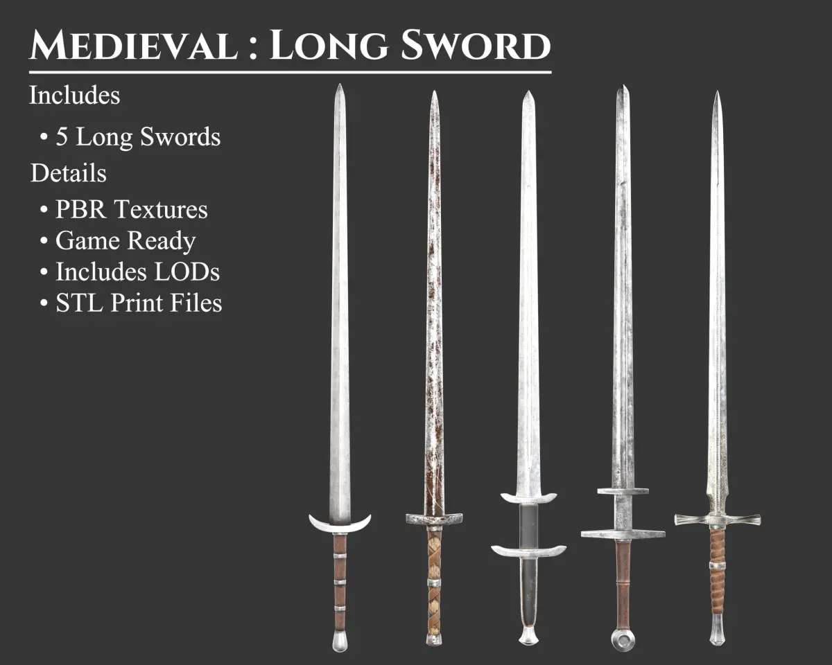 - This Collection offers 5 unique Long Swords. Includes the Crude, Common, Knightly, Elegant, and Noble Style long swords. These models can be purchased separately. These models may be included in other collections for a different price.