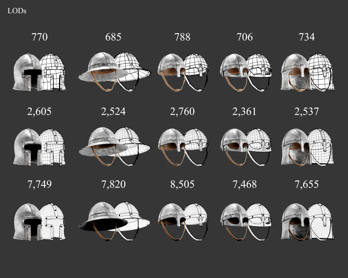 - This model is part of the Medieval Common Collection. These helmets feature simplistic designs of metal plates riveted together. This set was inspired by the armor of standard infantry soldiers. It has little decoration and is primarily built for protection on the battlefield.