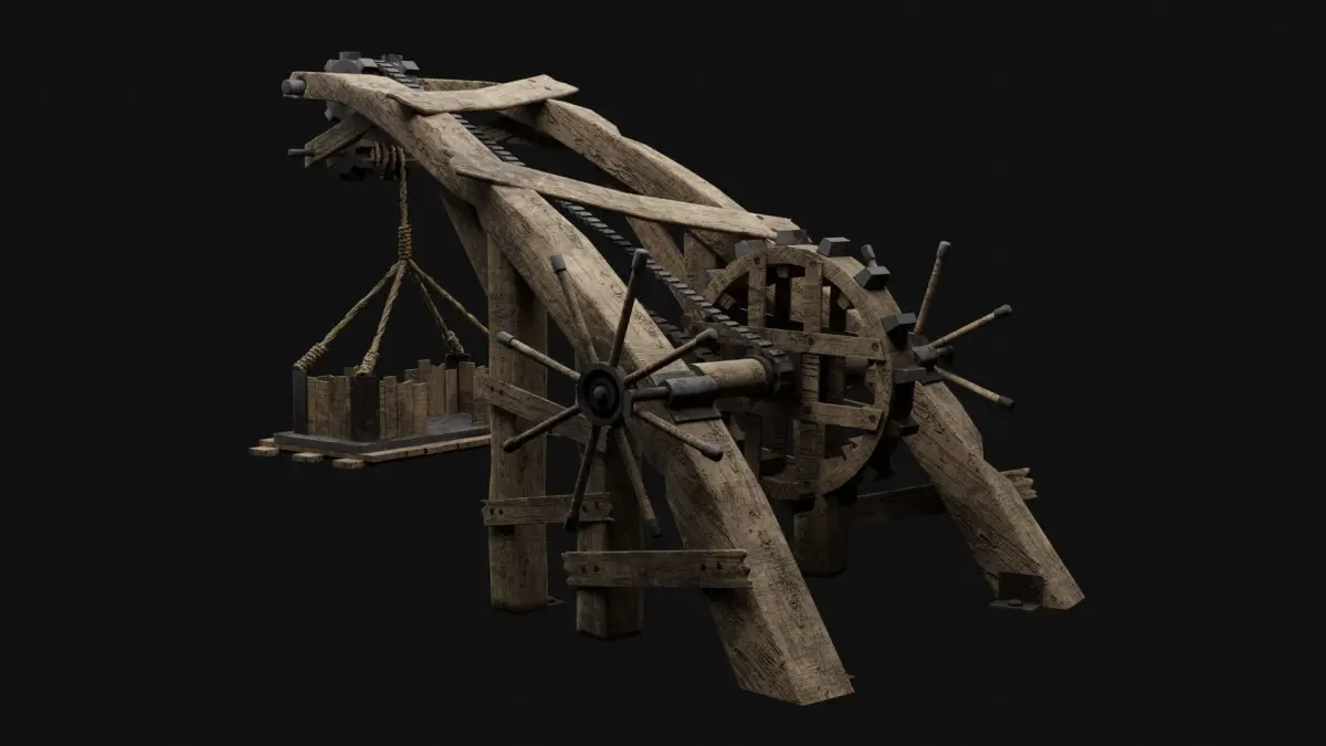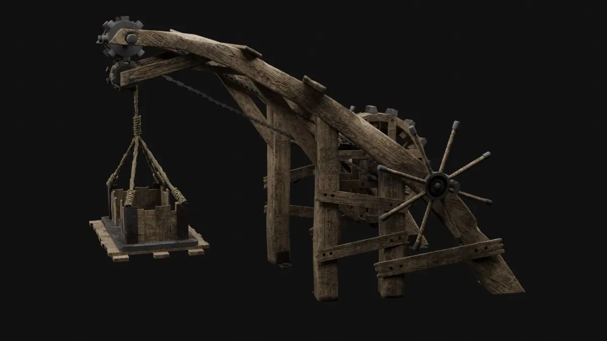 Game-ready model medieval crane lift created in blender 3.6.1, textured in substance painter.Textures 4K-Metallic-Normal -Color-Roughness-Height