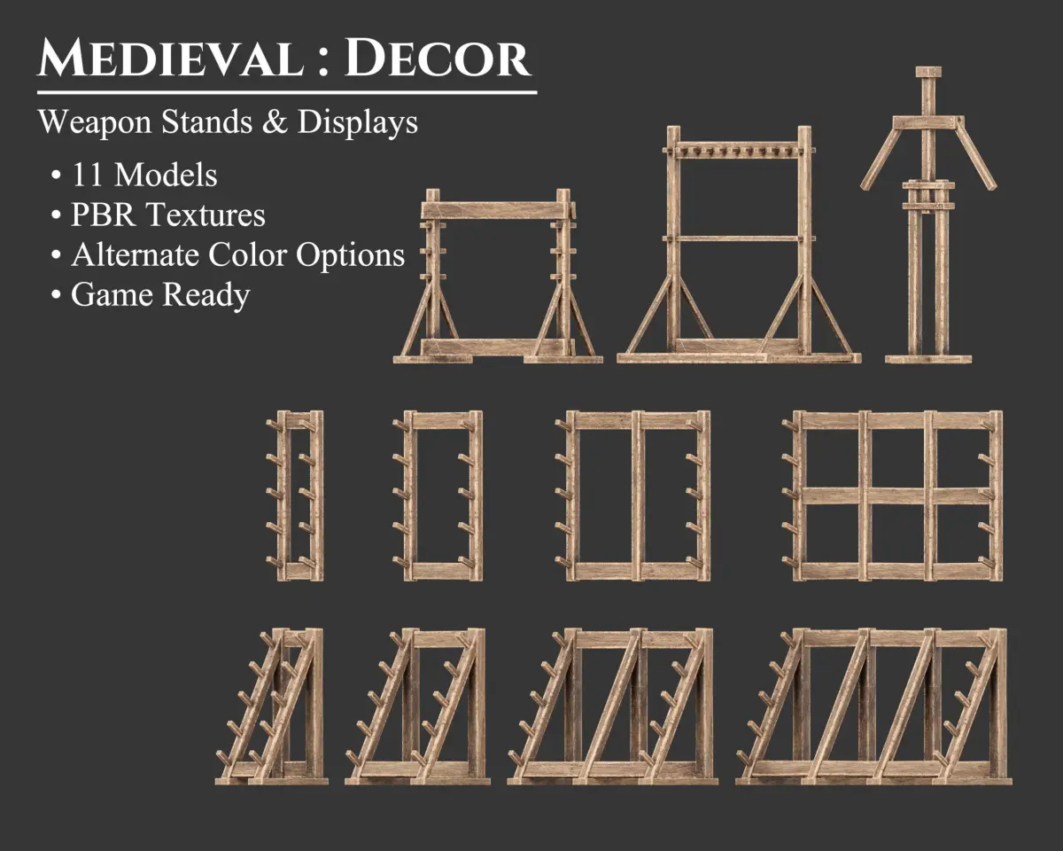 Medieval Decoration Weapon and Armor Stands Low-poly 3D model