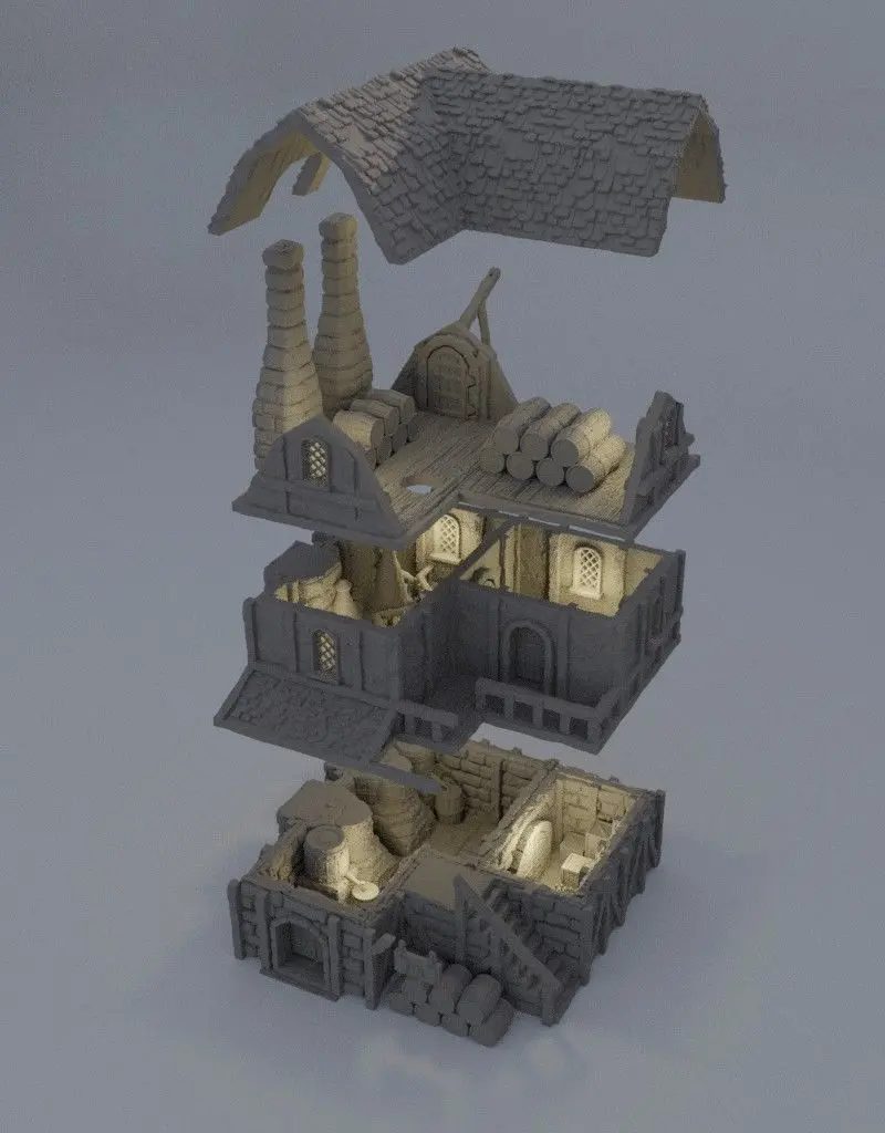 Medieval Distillery Adjusted to 28 mm miniatures Inside can be playable FDM Print preferred (Gray good ) No need to slice adjusted to Ender 3 pro v2 standarts