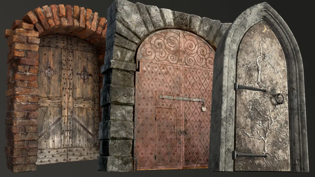 Collection consist three old medieval door for modern, medieval or any other game scene. 4K and 2K .png and .jpg textures.Features: