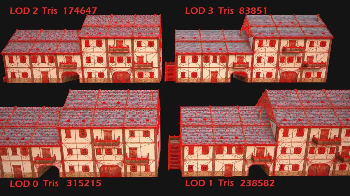 - Edges: 415499(LOD0),365901(LOD1),266011(LOD2),136806(LOD3).