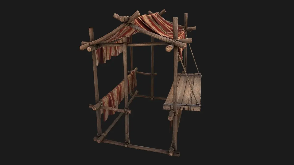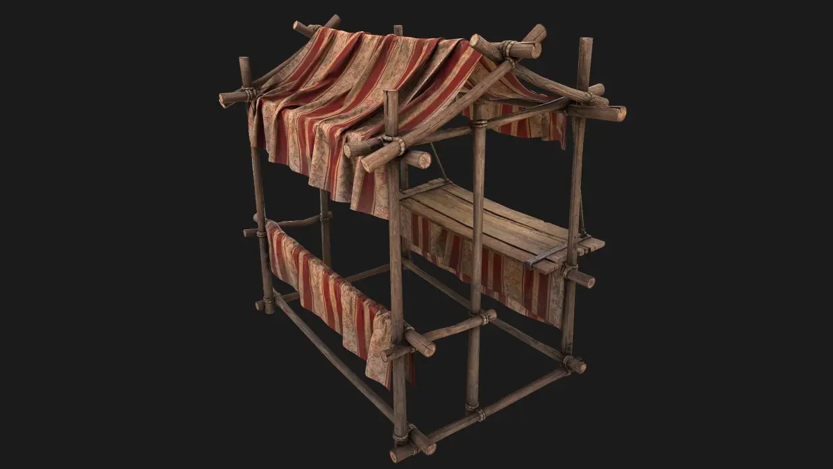 Game ready model. Market Stalls Tent fully textured, sculpted and rendered with Physical based rendering (PBR) - Shown images have been rendered in Marmoset Toolbag .The models contains lods, detailed information on the images.The model consists of two UV Maps :Tent(4096x4096).