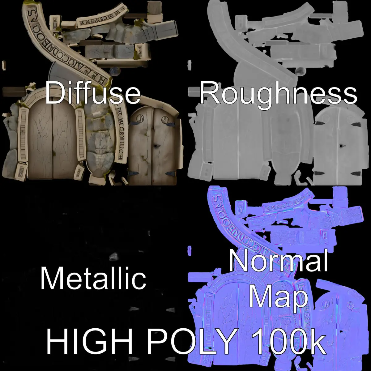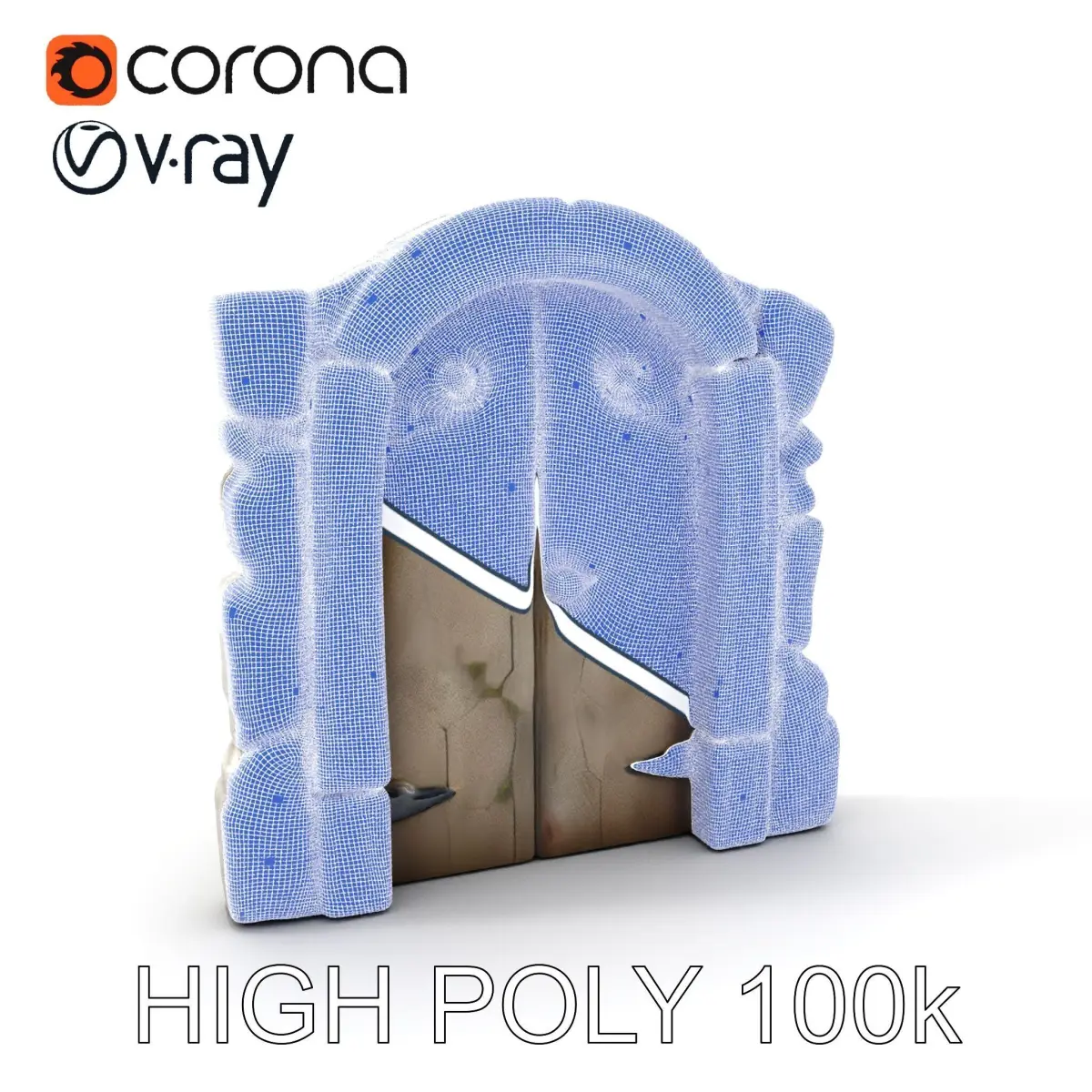 This model pack offers a detailed medieval fantasy door, perfect for virtual environments, games, and animations. It features three levels of detail (LOD) for flexibility in performance and quality: low-poly for mobile, middle-poly for detailed environments, and high-poly for cinematic renderings. The PBR textures include Diffuse, NormalMap, and Reflection/Roughness/Metallic, each at 4096x4096 resolution, ensuring compatibility with modern rendering engines like Vray, Corona, and game engines such as Unity and Unreal. The model's UVs are cleanly unwrapped, avoiding overlap to improve the texturing process. Ideal for fantasy games, medieval architecture visualizations, or any scenario requiring an intricate door model. Appreciate the detail by examining the WIRE and WEB 3D previews available. If you like the model, please leave a comment and a like. The first image is the reference used for creating the 3D model. It is important to carefully evaluate the quality of the model by examining the preview images that display the topology and polygonal mesh. These previews (WIRE and WEB 3D Preview) clearly demonstrate how accurately the model matches the original reference and how well the geometry has been executed.