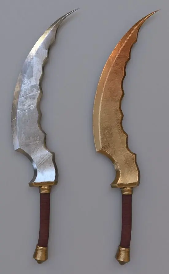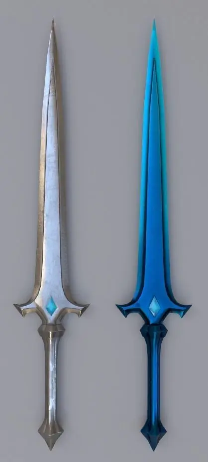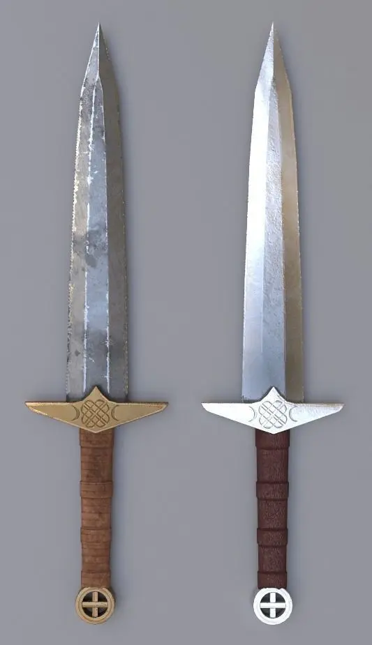 TEXTURESThere are two texture sets, SwordsA and SwordsB, which can be used with any of the sword models.SwordsA is more realistic and traditional textures. SwordsB are like darker/more gold and bronze, magical, or bloody versions.Both sets have 4096x4096 and 2048x2048 texture maps, so you can choose which one you'd like depending on your type of project.There is a combined map in each of these sets which contain the AO(ambient occlusion) map in channel R, the Roughness map in channel G, and the Metallic map in channel B.I have also included these maps separated as individual ones as well, for more flexibility.