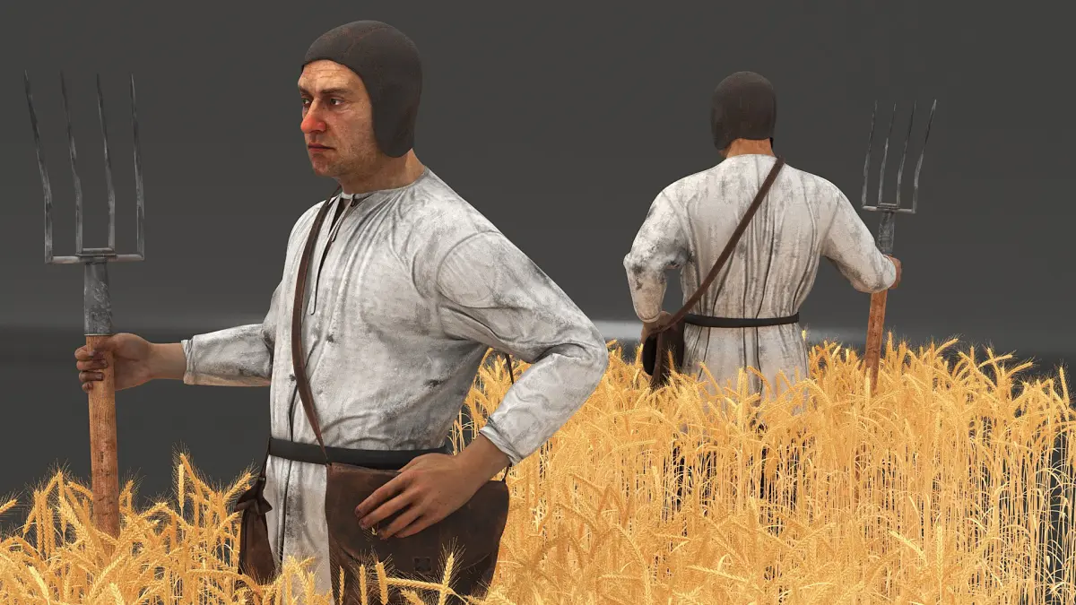 Medieval Farmer in Field is a three-dimensional model of historical agricultural worker, representing the daily life and labor of medieval European farmers.