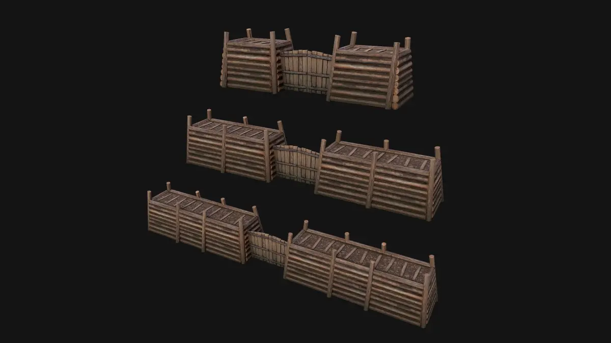 Game ready models.Stylized and detailed Medieval Fortress Gate with Wooden Wall fully textured, sculpted and rendered with Physical based rendering (PBR) - Shown images have been rendered in Marmoset Toolbag .The models contains lods, detailed information on the images.The set contains three variants of the gate with a wall of different lengths, as well as a constructor for creating straight wooden walls. The step of the constructor is 500 centimeters(Cm)=5 meters, you can also use the binding to the grid provided in the set.
