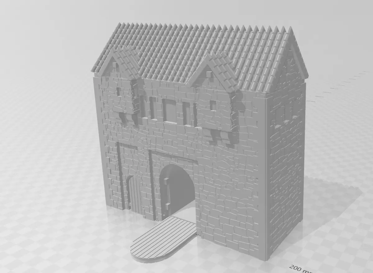 This is a simple model of a medieval gate, designed for 3D print. Ideal for persons with interest in wargaming or in printing 3D models of medieval buildings. The model is sized for 1/72 scale, but can be scaled up or down.I have test printed on an Ender 3, works fine.Note that Window parts require glue to fit.