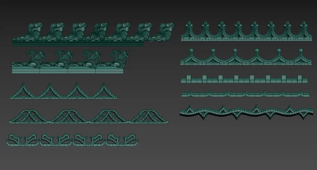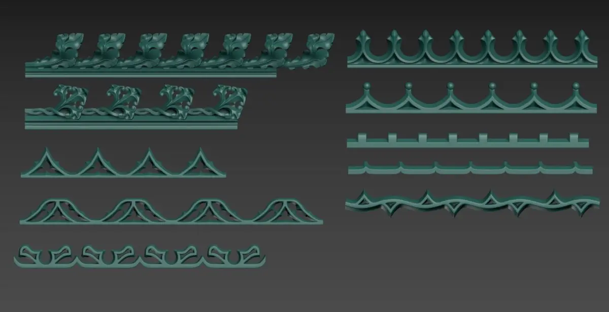 The pack includes 63 seamless pattern loops, 28 combined ornaments, 58 flowers and leaves, and small pieces for you to assemble custom patterns.All the models are low ploy with correct geometry, no tris, available for smoothing, subdividing and easy editing in any 3d redactor.The pack contains models in different formats and also Zbrush Curve Brushes and Insert Meshes.The models can be used in architecture,jewelry design and so on..The models are original and there will be more available in the future.