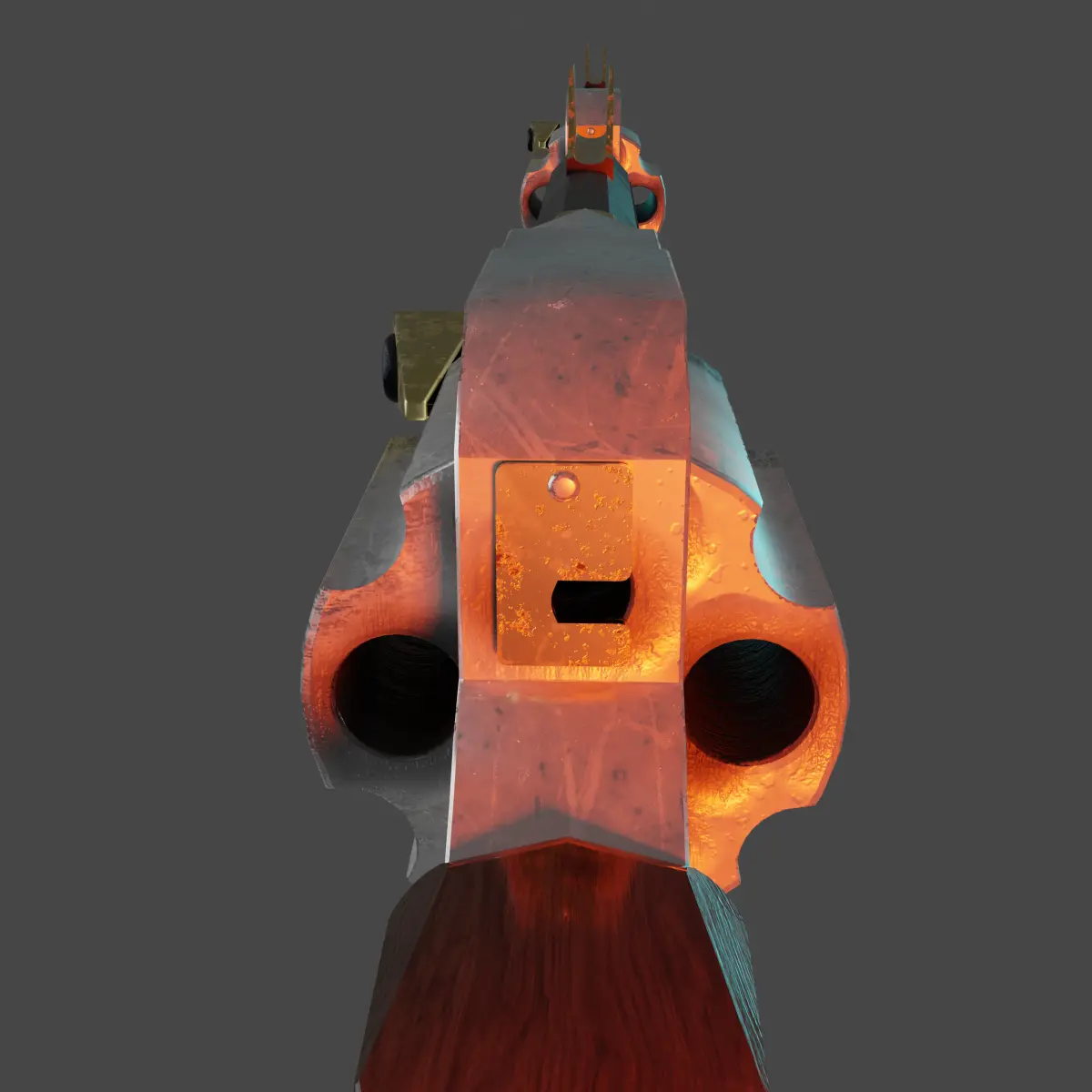 A gun using medieval materials and to a degree technology. The trigger for this is not even a trigger per se it is a locking mechanism for the revolver piece. To shoot a gun like this you cork it with an igniter which is created through honey gunpowder and other various materials this then lights the black powder on the bullet.