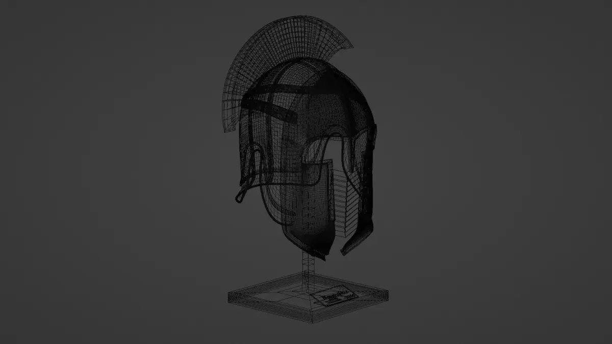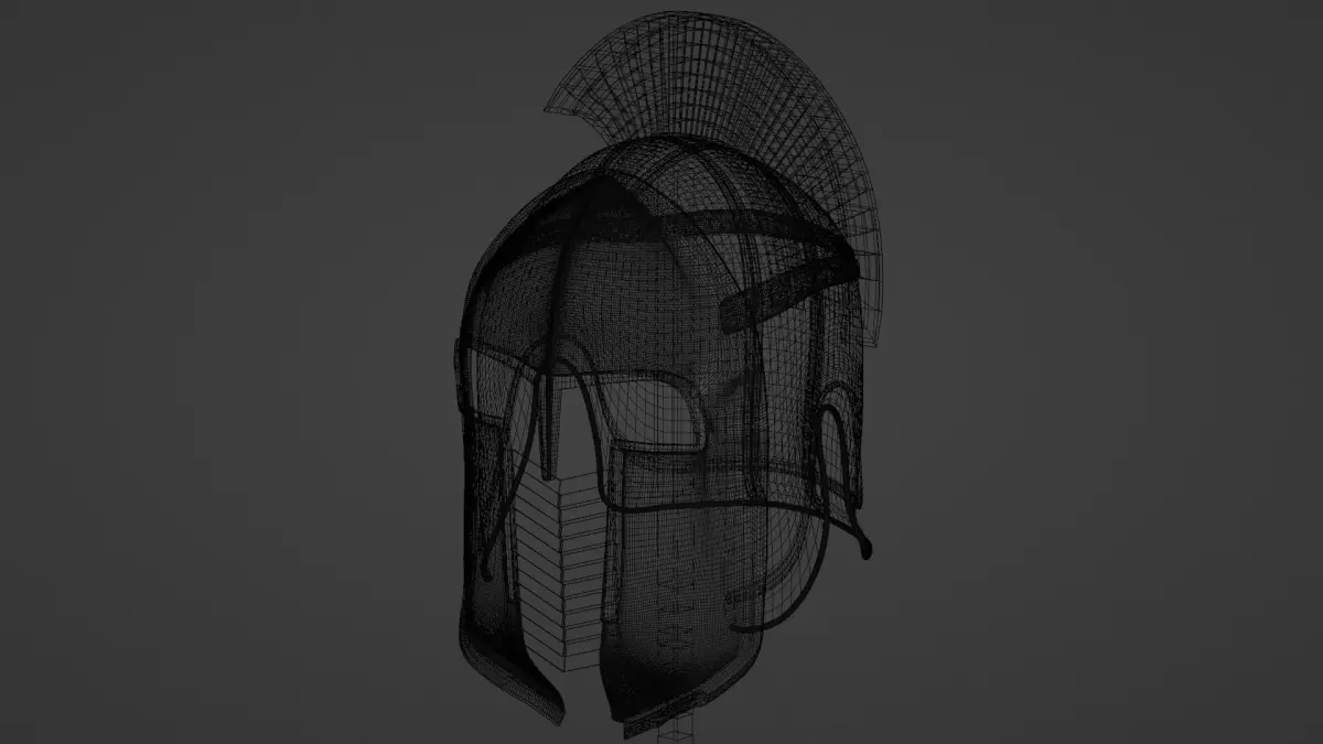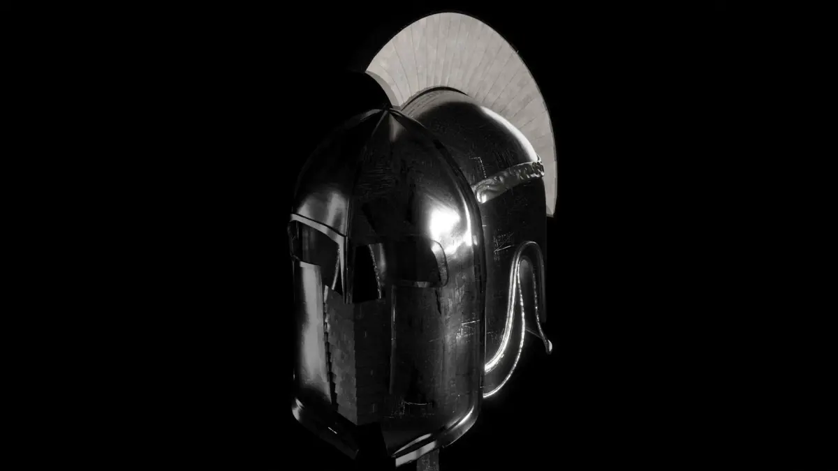 3D model of a medieval knight's helmet, a priceless historical work of art currently up for grabs.The genuine design and complex detailing of this finely sculpted helmet reflect the spirit of a forgotten period. Its precisely crafted polished steel finish gleams with a sense of chivalry, adding a wonderful touch to any collection of historical relics or serving as a spectacular display piece for fans of medieval reenactment and history.