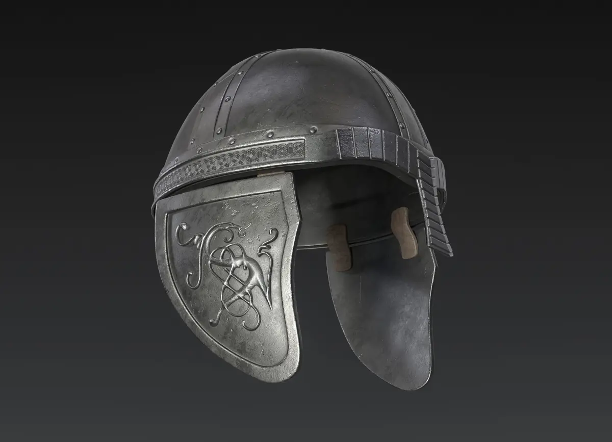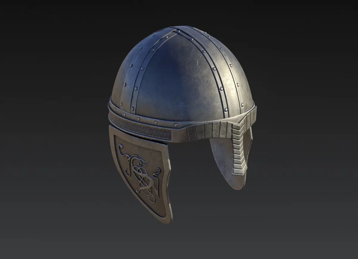 Medieval style Helmet asset with 8K textures and quad based topology for subdivision and closeup renders.