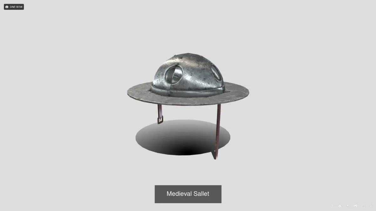 A set of European medieval helms.