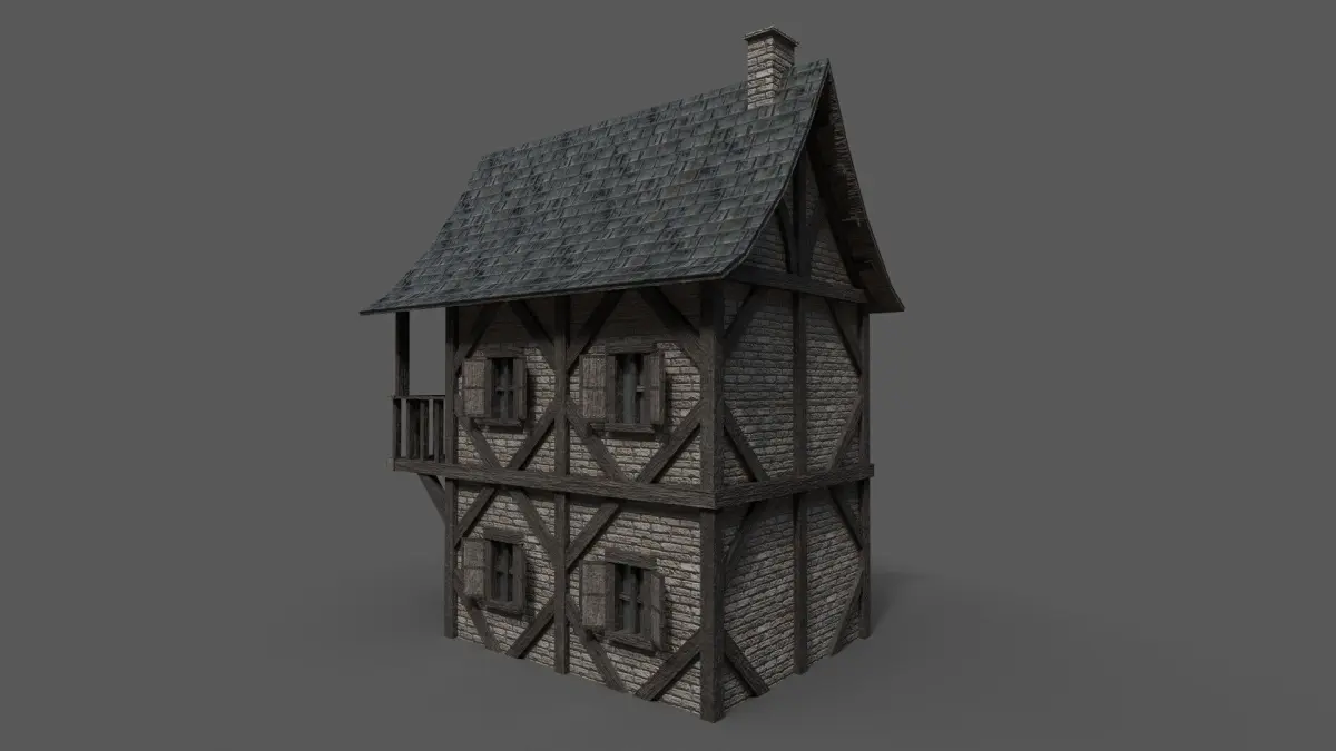 A low poly model of a medieval house.