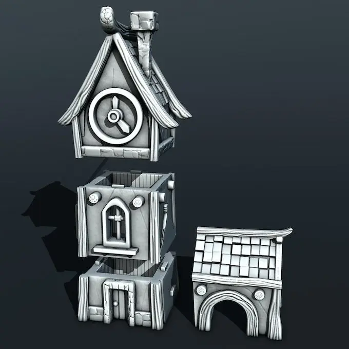 3D models of medieval architecture in cartoon style for 3D printing ary digital representations of medieval buildings and structures that have been stylized to look like cartoons. These models can be used to create physical objects using a 3D printer. Some possible use for these models include educational displays, tabletop gaming terrain, and decorative items.