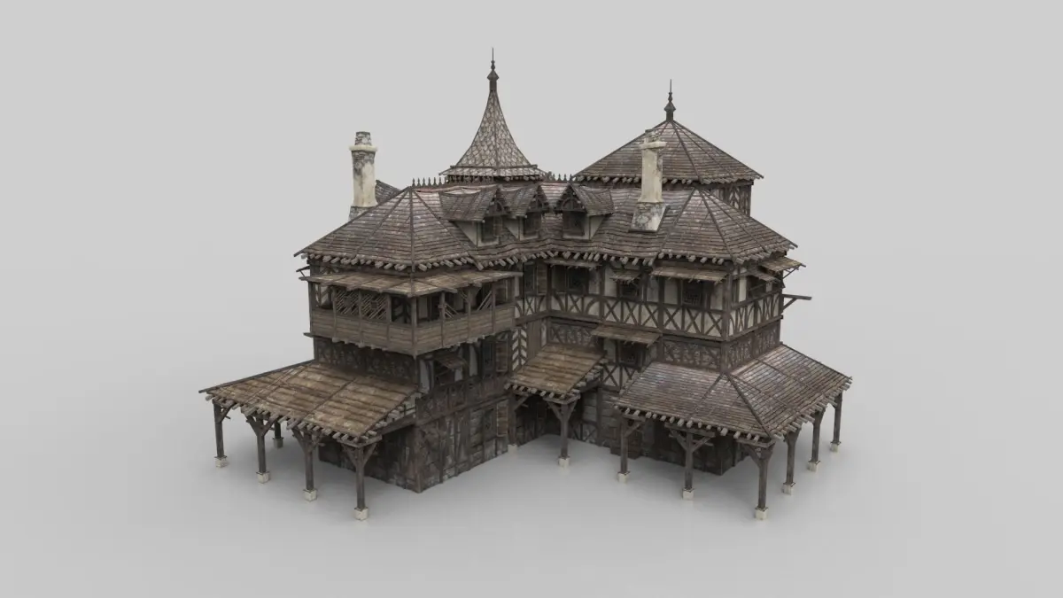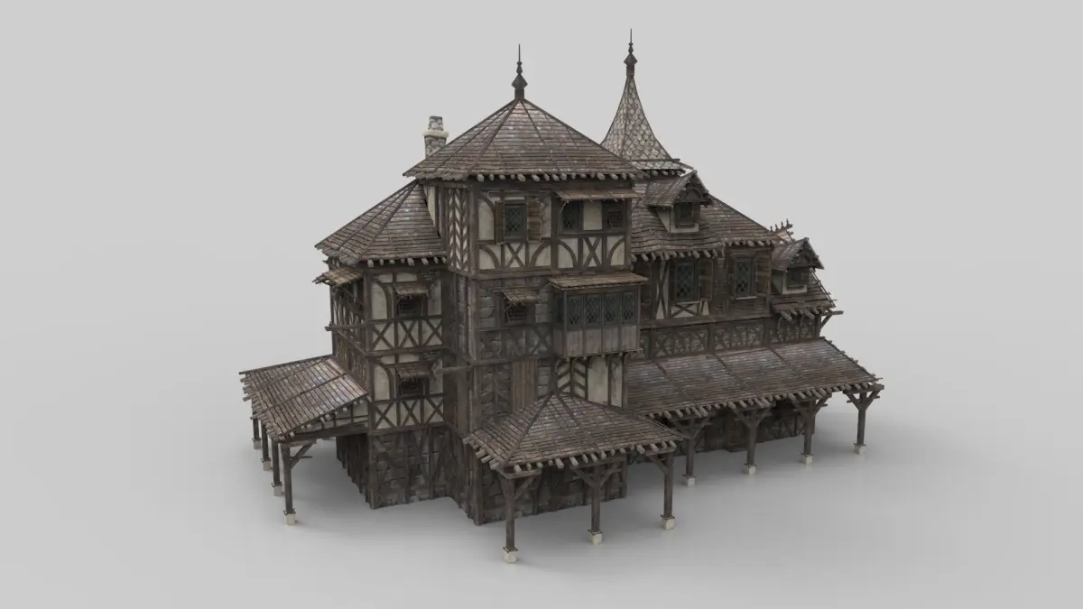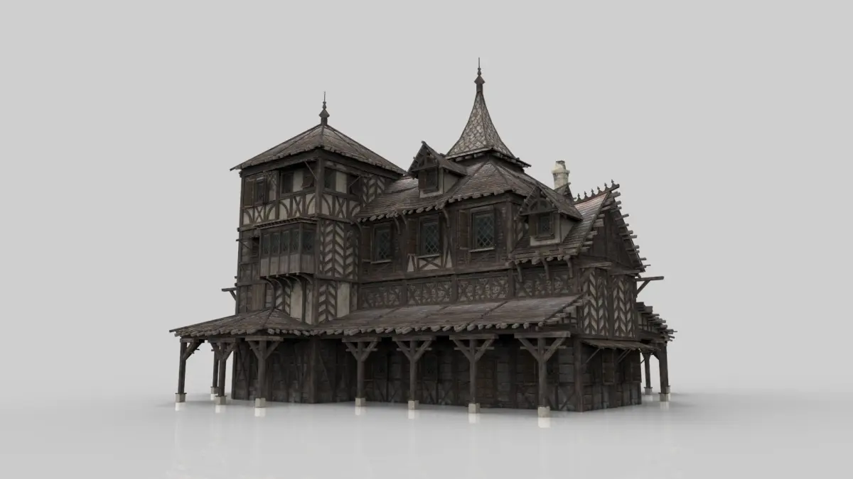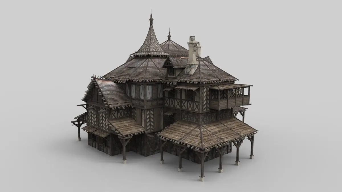 Model of fantasy medieval house. Unit system is set to metric. Real-world scale. 3ds max 2015.All system LODs and collision.