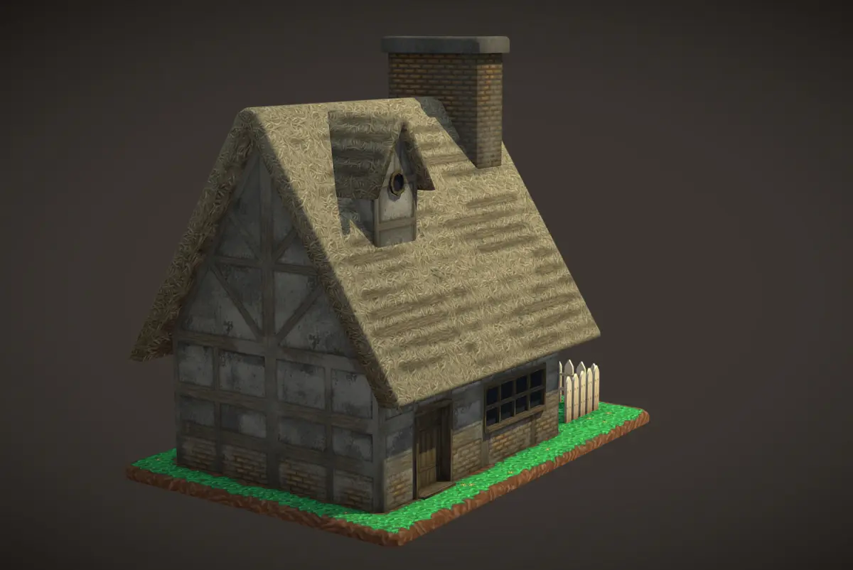 Simple low poly medieval house with hand painted color map (2048x2048)