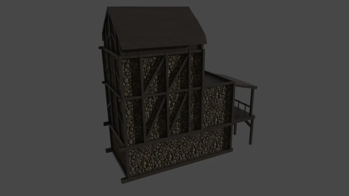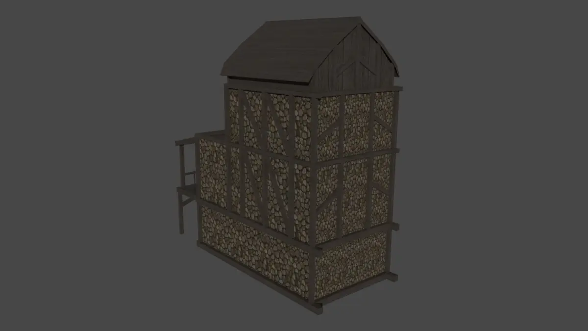 A 3D model of a medieval house made by blender. Rendered by CyclesAll Textures are included in a zipped file (Environment Assets And Textures do not exist)Files => Obj, Fbx and StlVerts: 1955Faces: 1676Tris: 3554Objects: 69
