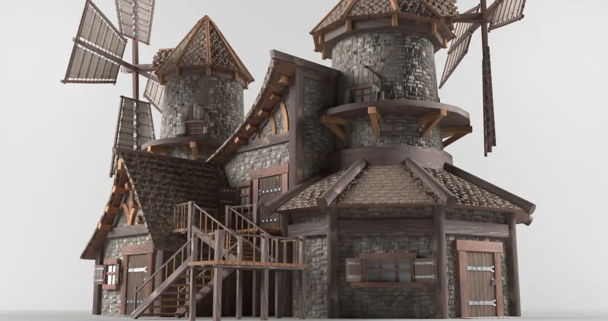 This is a model of a medieval house in a fantasy style, close to German architecture.