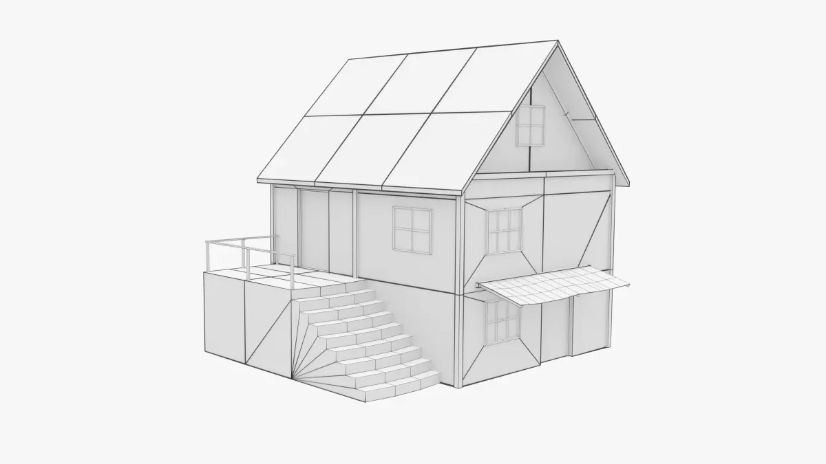- Old house is fully textured with all materials applied.