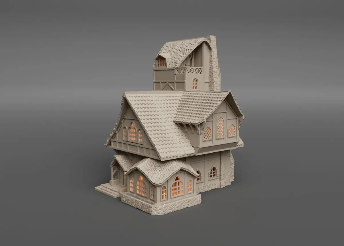Large medieval inn in 1:60 scale, perfect for tabletop RPGs, dioramas, or collectors.Although designed at a 1:60 scale, you can print it in larger sizes to fully appreciate its intricate details. This model prints without the need for additional supports. The medieval structure features four fully functional floors that assemble easily without glue, ensuring a perfect fit for easy assembly and disassembly. Enjoy both the detailed exterior and immersive interiors, with working doors and dedicated spaces for placing small LED lights to enhance the realism.Unleash your creativity by painting and decorating this impressive medieval inn, the perfect setting for your epic adventures or next tabletop campaign!Video: https://youtu.be/hgEsY8UFKawHow to place the doors: https://youtu.be/GQhFoNIZclYTo place the led lights, insert the electronics and batteries through the chimney.Sell the printed design: https://www.patreon.com/Shira3D