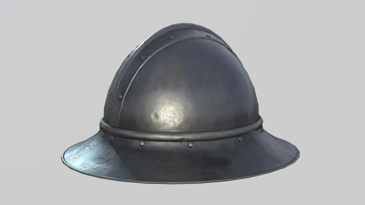 A kettle hat, also known as a war hat, is a type of helmet made of iron or steel in the shape of a brimmed hat. Usually worn by common soldiers, there are many design variations. The only common element is a wide brim that afforded extra protection to the wearer. It gained its common English language name from its resemblance to a metal cooking pot.