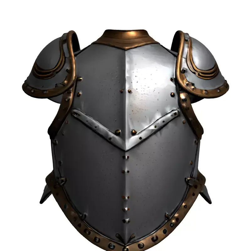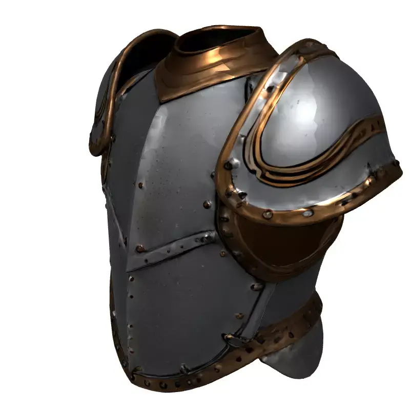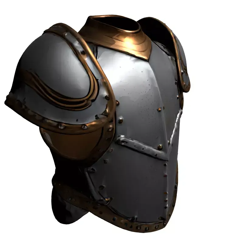 This highly detailed 3D model represents a classic medieval knight's chest armor, complete with articulated pauldrons. Crafted with meticulous attention to historical accuracy and artistic flair, the model showcases intricate metal plating, reinforced rivets, and elegant brass-toned trim. It is ideal for a wide range of creative projects, including immersive game development, historical architectural visualizations, compelling digital art compositions, or realistic film and animation sequences. Its clean topology and efficient polycount ensure smooth performance in real-time applications like augmented reality (AR) and virtual reality (VR) experiences, while also being perfectly suited for high-quality static renders. The model features professional UV unwrapping and includes a full suite of physically based rendering (PBR) textures, such as Albedo/Base Color, Normal, Roughness, and Metallic maps, guaranteeing realistic material representation across various rendering engines. It is provided in multiple industry-standard formats, including GLB, OBJ, FBX, USD, DAE, and ABC, offering broad compatibility. Whether for a heroic character, an environmental prop, or a detailed close-up, this armor is ready to enhance your next project with authenticity and visual impact.