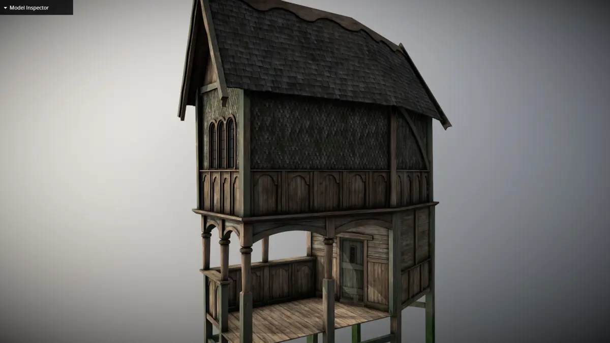 Medieval Lake Village - House 10 with interiors Low-poly 3D model