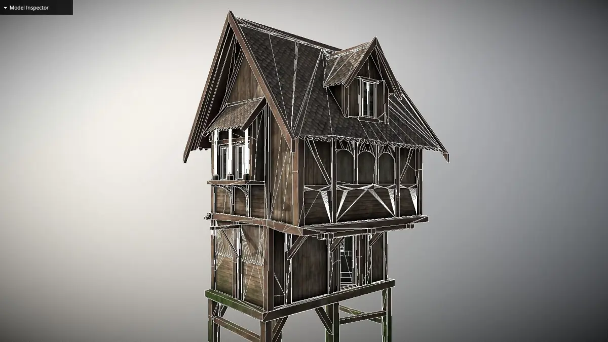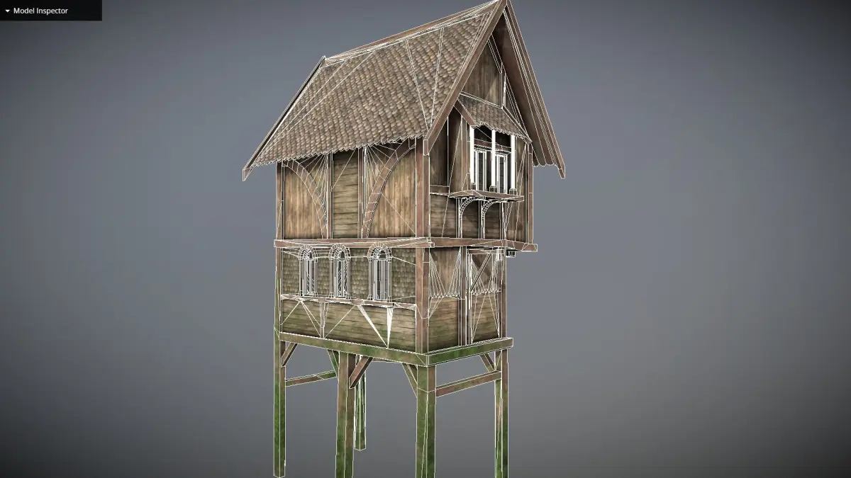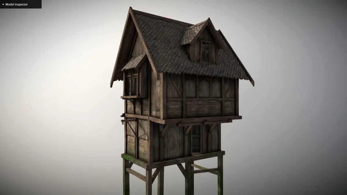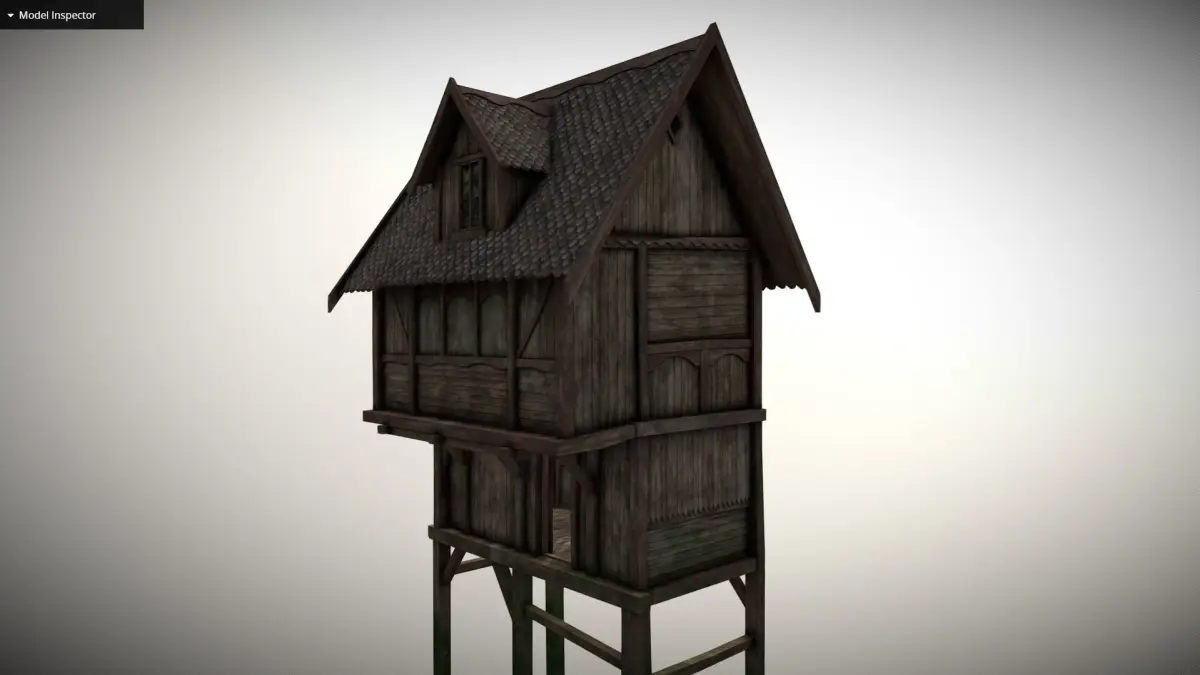 Medieval Lake Village - House 11 with interiors Low-poly 3D model