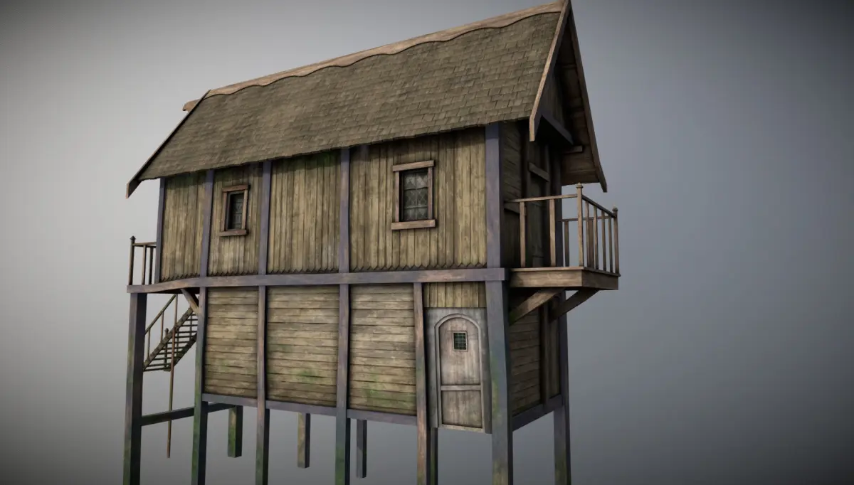 Medieval lake village - House 13 Low-poly 3D model