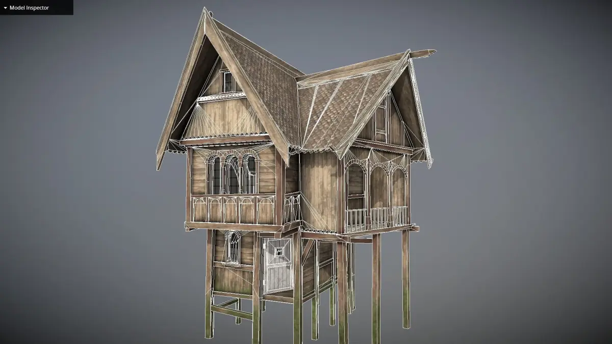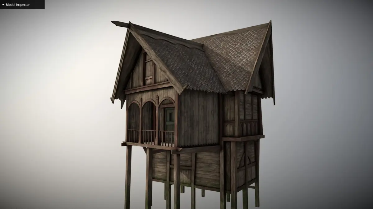 Medieval Lake Village - House 20 with interiors Low-poly 3D model