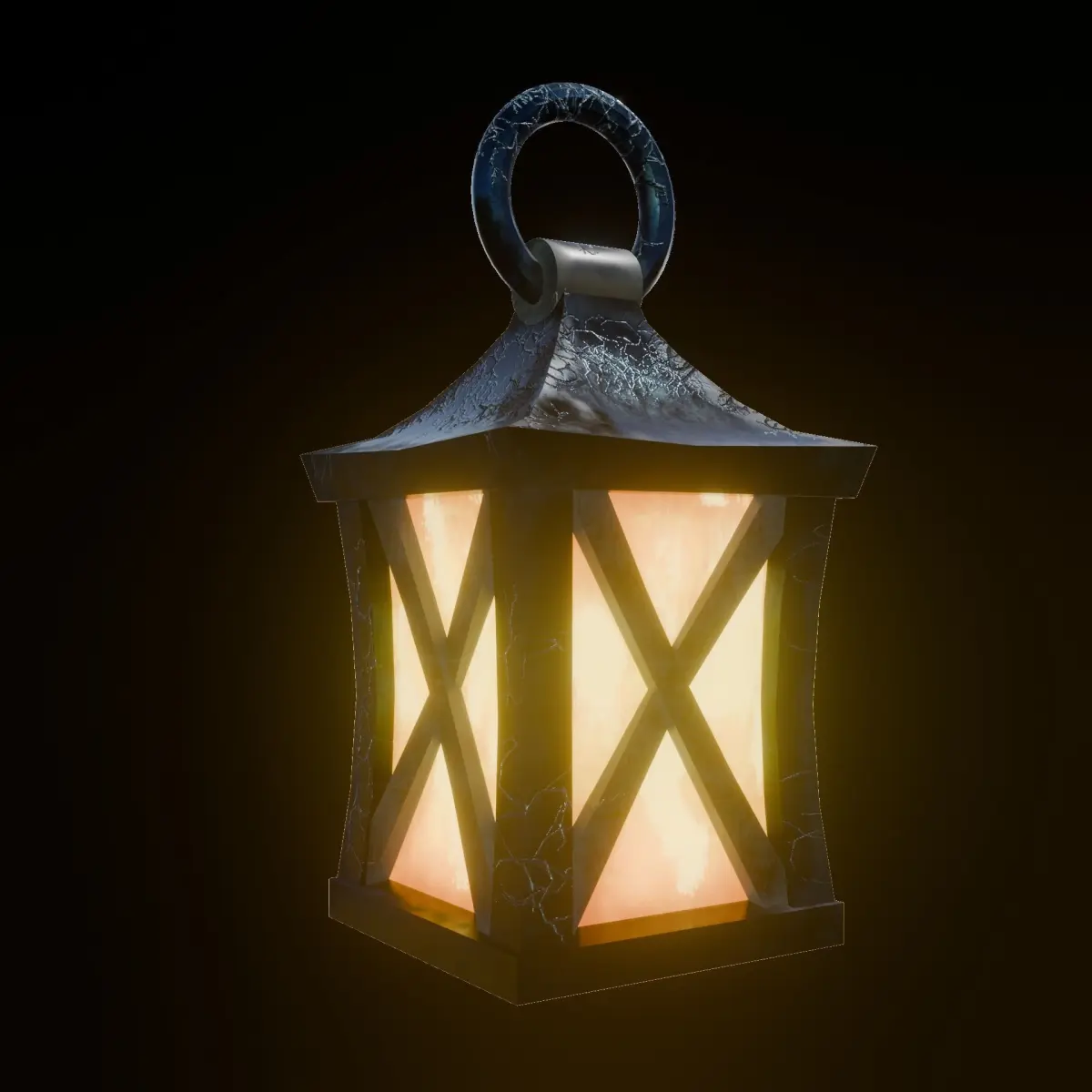 Medieval blue lamp design was modeled with Blender 3D. Substance Painter program was used for painting. There is a single material throughout the whole model. Total entire modelVerticles: 970 Trigs: 1860
