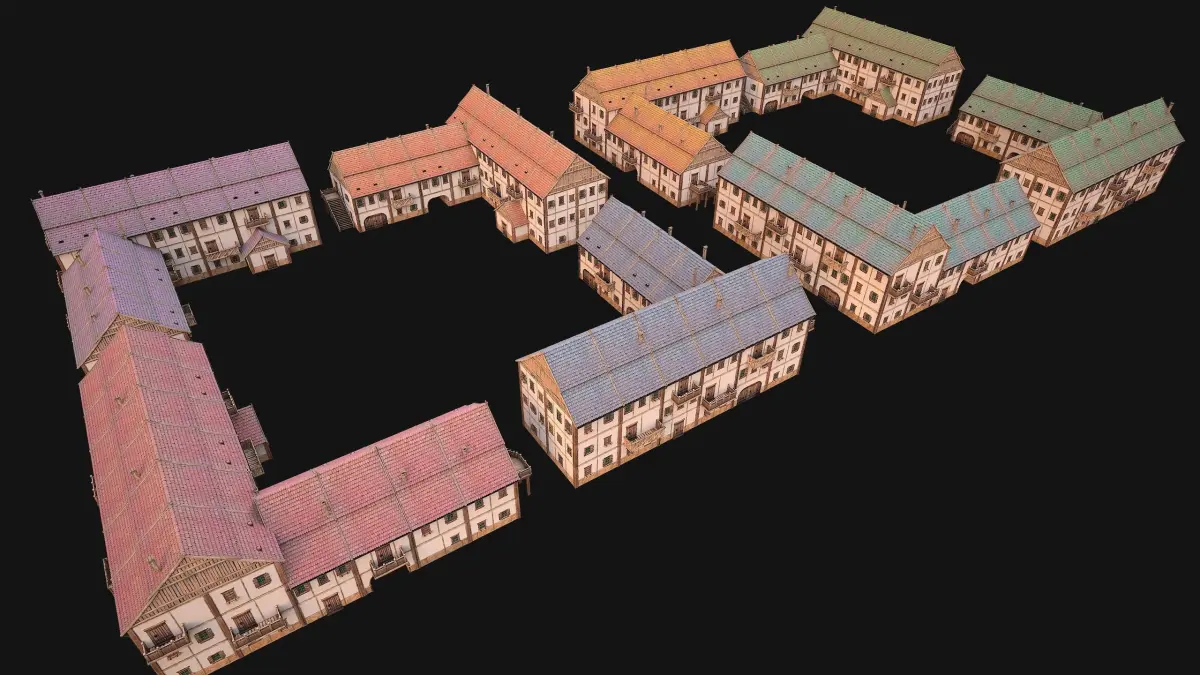 Textures 4096x4096 (tga) (18 UV Maps) The set also includes 9 roof colors.