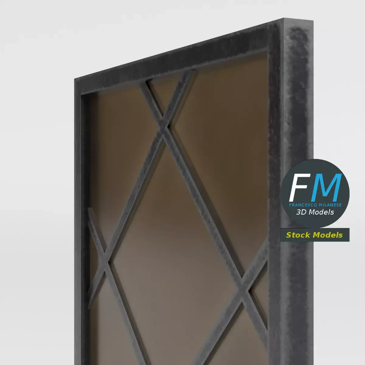 Modular medieval-style metal lattice window 3D Model, often found in taverns, inns, or castles. Ideal for fantasy or historical environments. The glass is frosted, semitransparent; I made the second rendering putting a light source behind it (the light source is not included in the package). 1 object, 2 Materials (glass, frame) with PBR Textures sharing the same non overlapping UV Layout map. Production-ready 3D Model, with PBR materials, textures, non overlapping UV Layout map provided in the package.Quads only geometries (no tris/ngons).Easily customizable: UV unwrapped geometries; UV Layout maps provided in the package as png with alpha images.Each Object, Material or Texture provided in the package has a unique, meaningful name.Made with Blender 4.5.0 LTS with Cycles Principled BSDF PBR shader with textures included (Eevee compatible), then exported to OBJ and FBX; materials and textures made with Substance Painter (Adobe 3D Painter), exported for PBR, Cycles, V-Ray, Unity, Unreal.PROMO IMAGES: the first image has been rendered in Cycles for Blender; in particular, you can find 11+ promo images in this description: