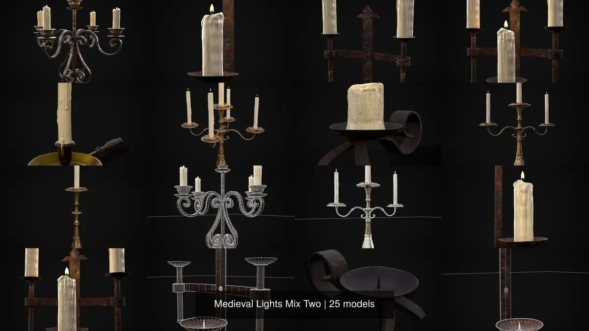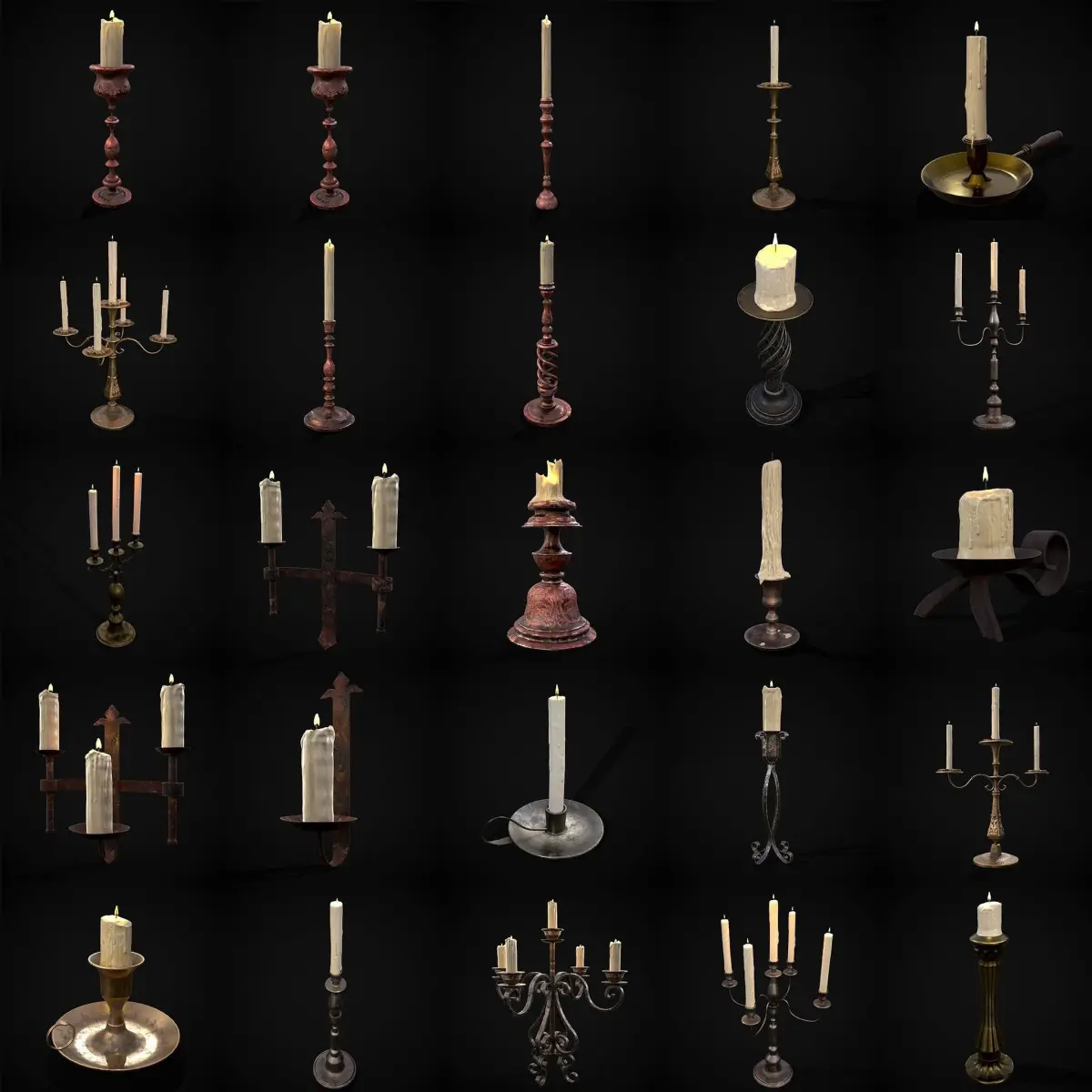 Medieval Candles Pack - 3D Model PBR Texture available in 4096 x 4096 Maps include : Basecolor, Normal, Roughness, Height. All Preview renders were done Marmoset Toolbag 3.08 Scaled to real world scale. Customer Service Guaranteed. From the Creators at Get Dead Entertainment. Please like and Rate! Follow us on FaceBook and Instagram to keep updated on all our newest models.All Models also Sold Separately.Models Included: