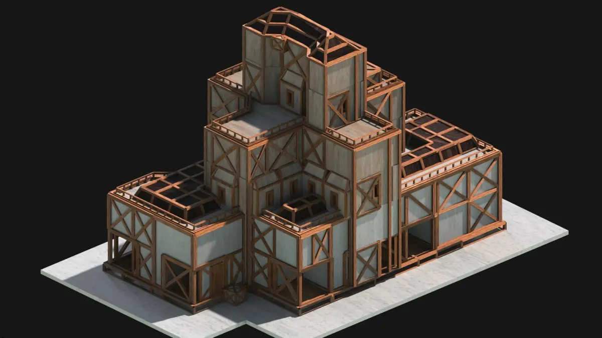 Medieval Lowpoly Building Castle Tower Wooden Village Old Stone House Historical Architecture Old
