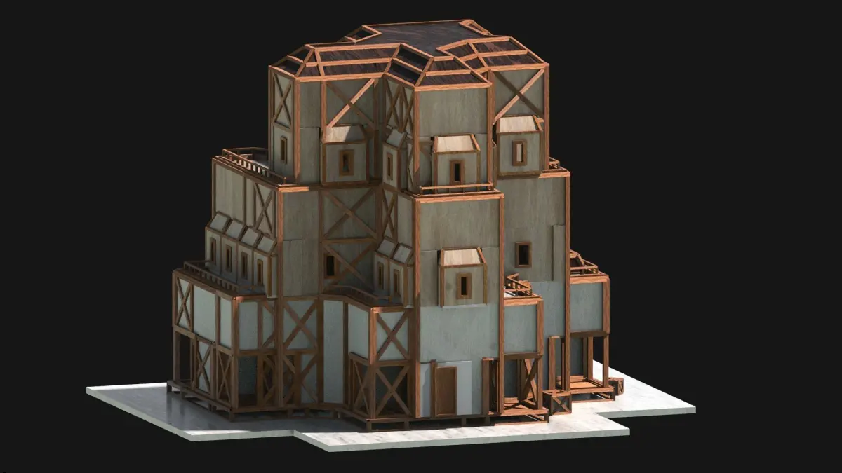 Medieval Lowpoly Building Castle Tower Wooden Village Old Stone House Historical Architecture Old